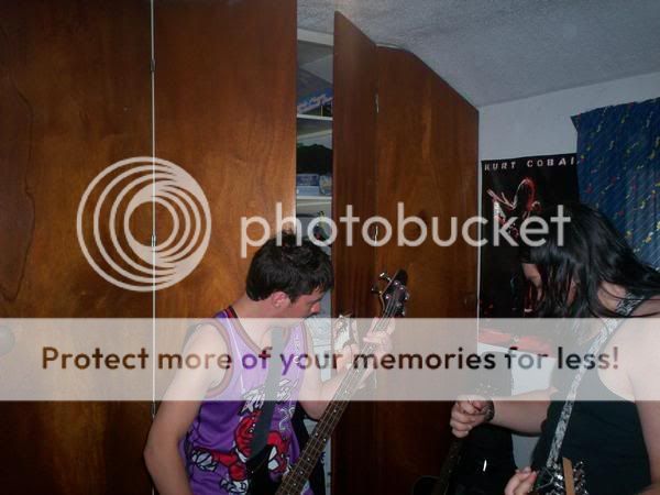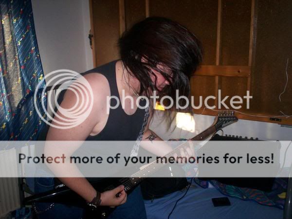 We've not been together so long and I'm teaching Gully how to play bass so I've gotta write the bass lines, the guitar lines and the lyrics atm. I'm currantly looking for new members to join but I've not met anyone that fits the profile yet :(